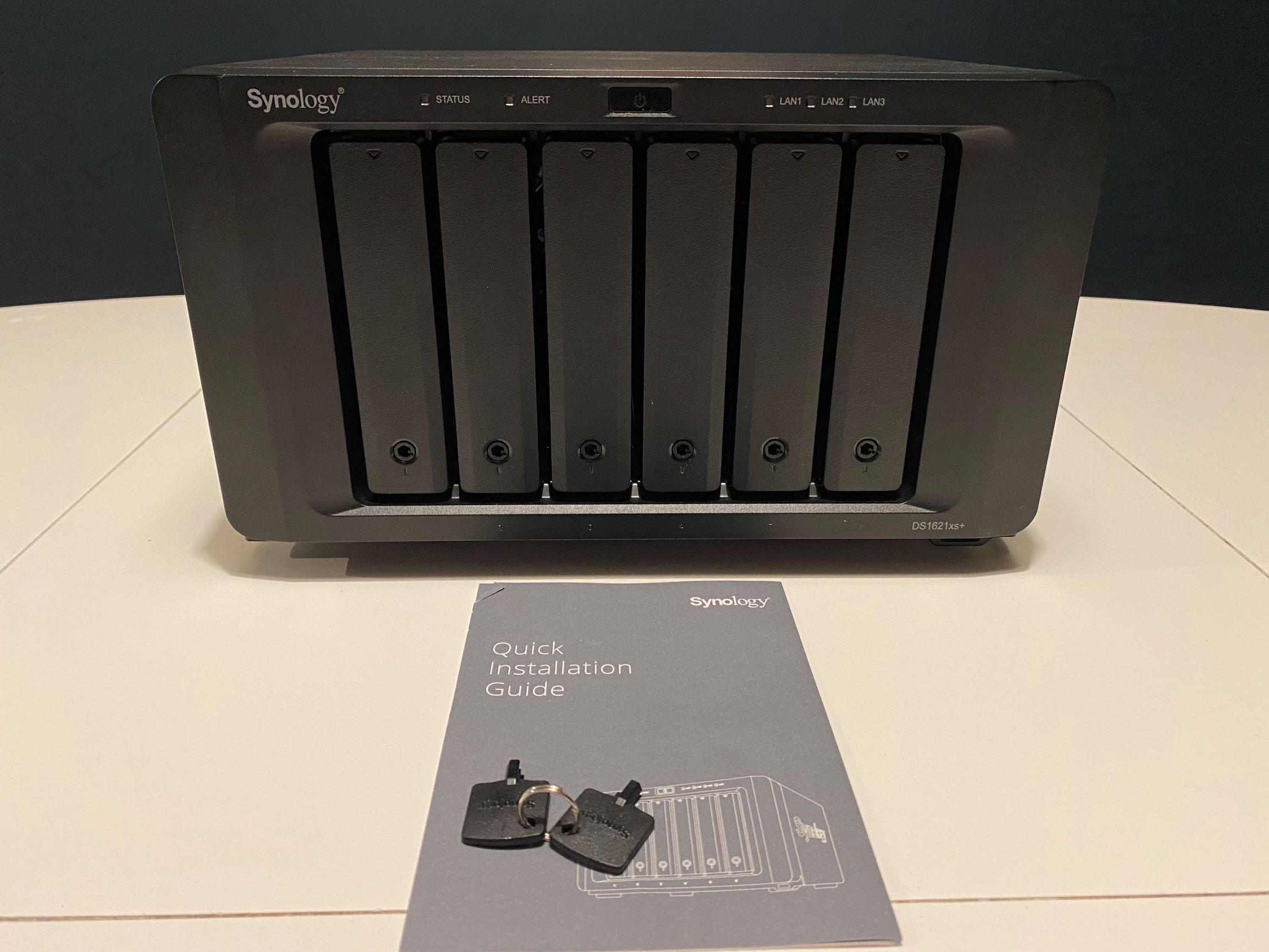 The good folks over at Synology have been kind enough to loan me a Synology DS1621xs+ to review and play around with. What is a DS1621xs+ I hear you ask? It is a 6 bay desktop NAS (Network Attached Storage) powered by an Intel Xeon D-1527 4-core 2.2 GHz processor with expandable memory capacity and room for a couple of M.2 SSD NVMe drives too. Head on over the Synology page to check out the spec in more detail.